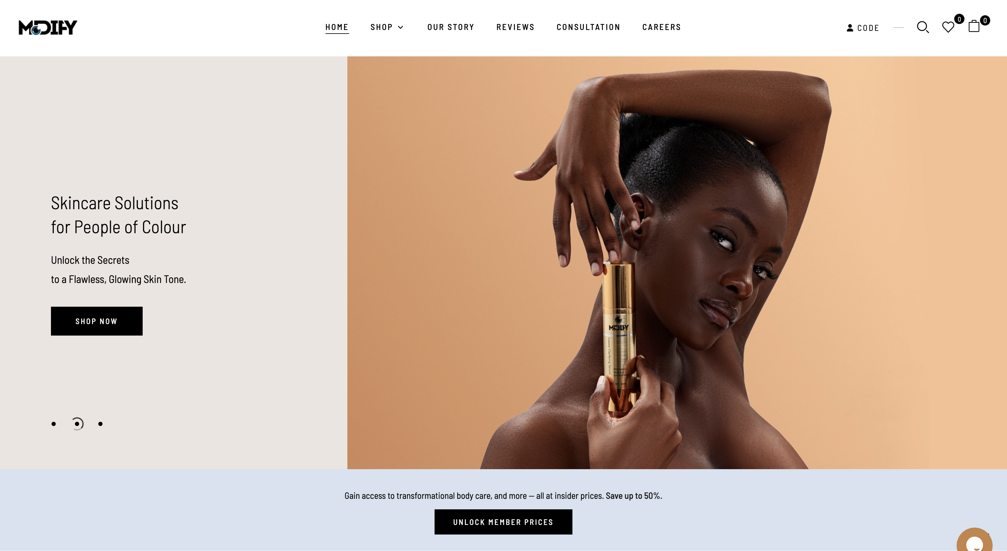 - E-commerce for skincare & beauty, focused on melanin-rich skin.
